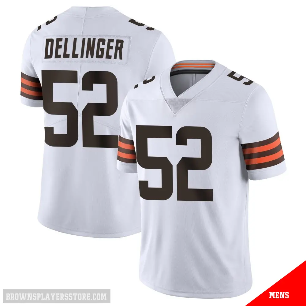 Display your Browns spirit year-round with this #52 Men's Garrett Dellinger White Limited Cleveland Browns Vapor Untouchable Jersey. Whether you're in the crowd or lounging at home, it's the ideal way to showcase your love for Browns.