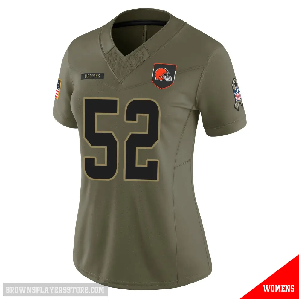 Display your Browns spirit year-round with this #52 Women's Kendrick Green Olive Limited Cleveland Browns 2025 Salute to Service Jersey. Whether you're in the crowd or lounging at home, it's the ideal way to showcase your love for Browns.