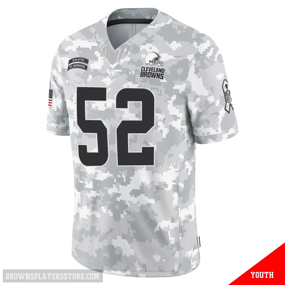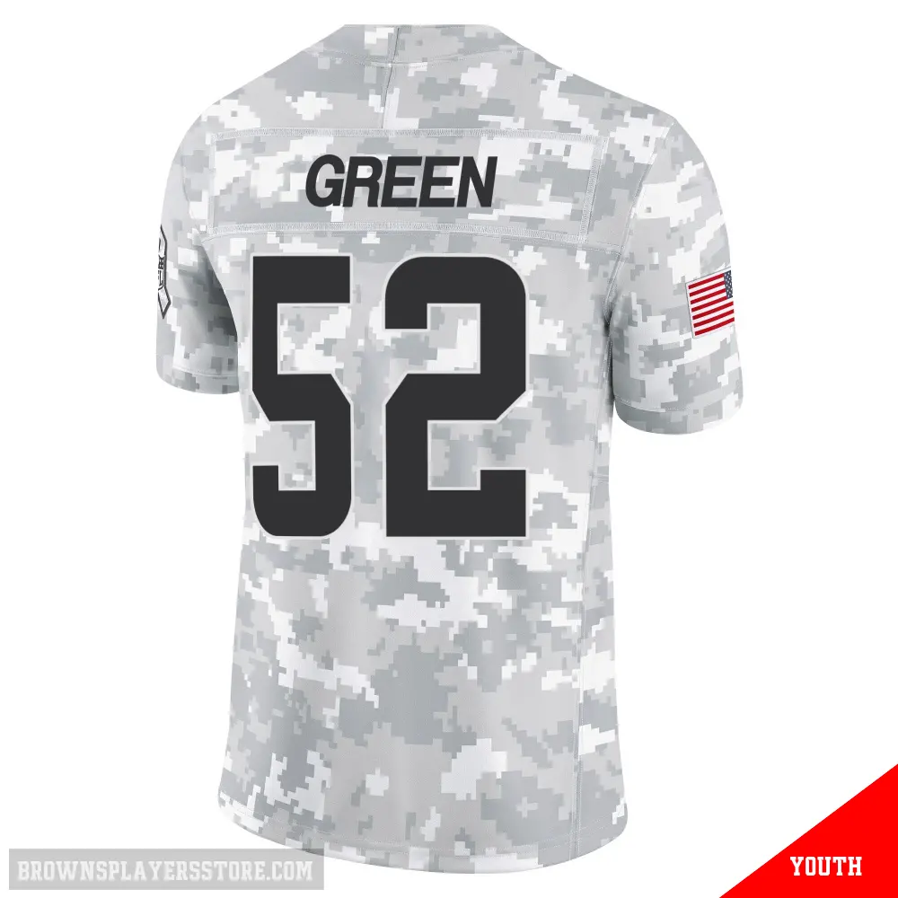 Display your Browns spirit year-round with this #52 Youth Kendrick Green Arctic Camo Limited Cleveland Browns 2024 Salute to Service Jersey. Whether you're in the crowd or lounging at home, it's the ideal way to showcase your love for Browns.