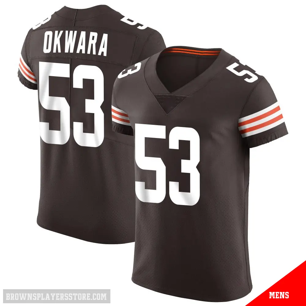 Display your Browns spirit year-round with this #53 Men's Julian Okwara Brown Elite Cleveland Browns Vapor Jersey. Whether you're in the crowd or lounging at home, it's the ideal way to showcase your love for Browns.