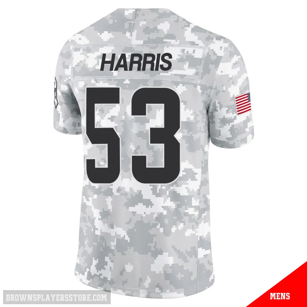 Display your Browns spirit year-round with this #53 Men's Nick Harris Arctic Camo Limited Cleveland Browns 2024 Salute to Service Jersey. Whether you're in the crowd or lounging at home, it's the ideal way to showcase your love for Browns.