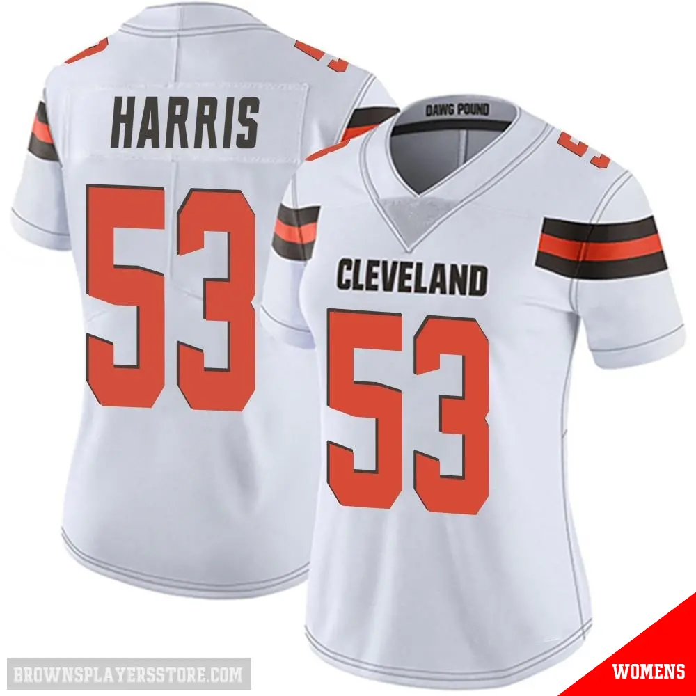 >Nick Harris Jersey>#53 Women's Nick Harris White Limited Cleveland Browns Vapor Untouchable Jersey