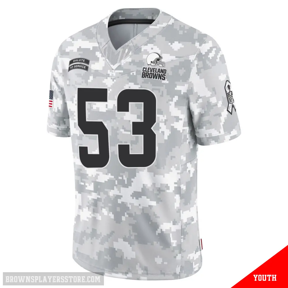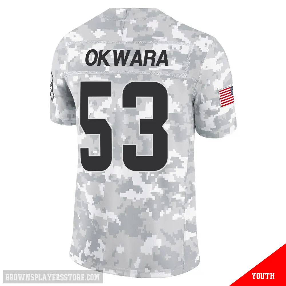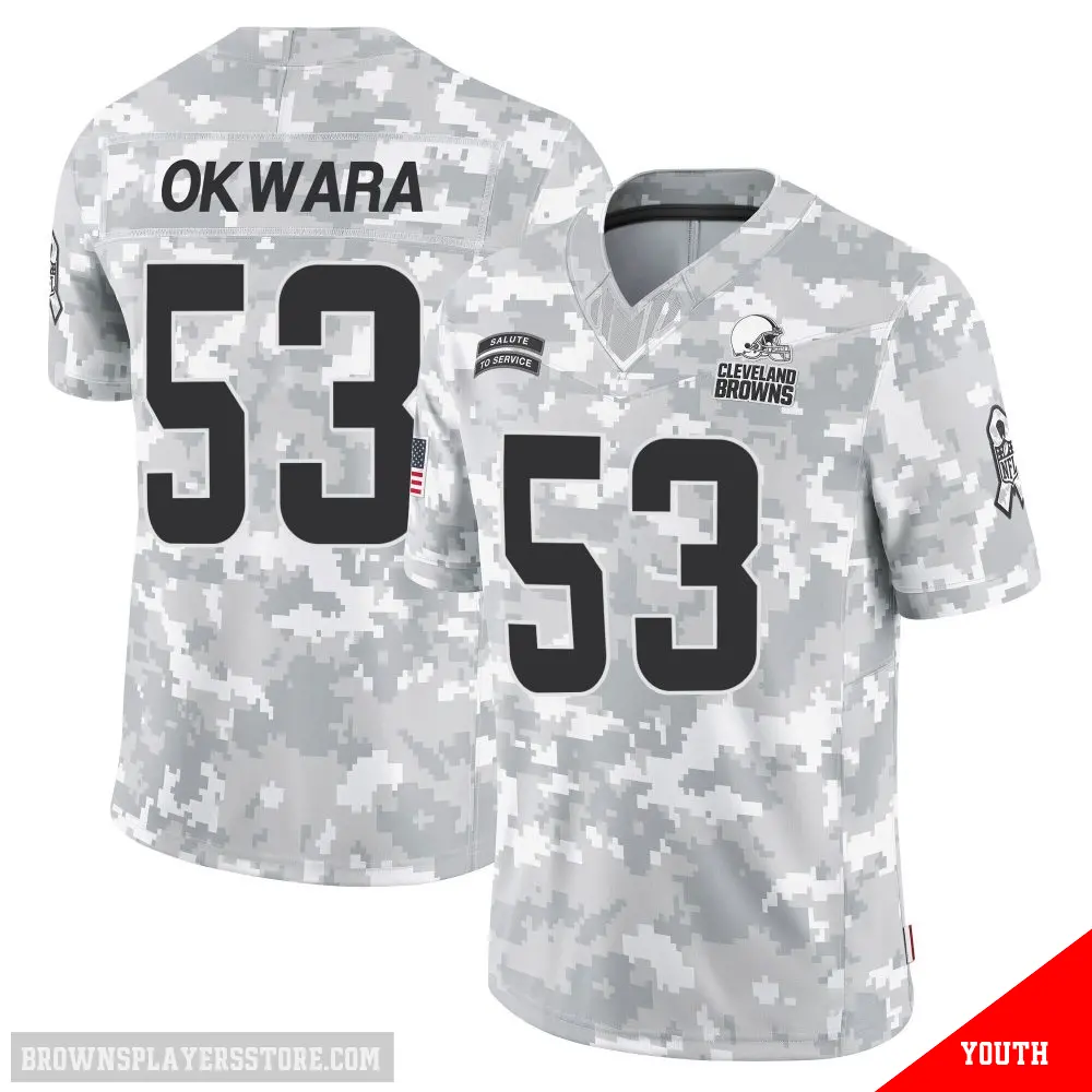 Display your Browns spirit year-round with this #53 Youth Julian Okwara Arctic Camo Limited Cleveland Browns 2024 Salute to Service Jersey. Whether you're in the crowd or lounging at home, it's the ideal way to showcase your love for Browns.