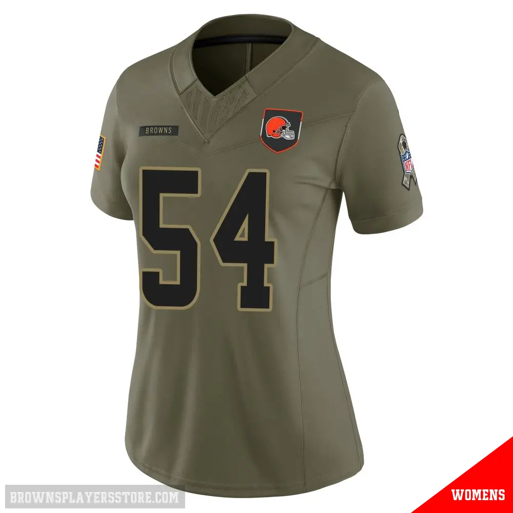 Display your Browns spirit year-round with this #54 Women's Edefuan Ulofoshio Olive Limited Cleveland Browns 2025 Salute to Service Jersey. Whether you're in the crowd or lounging at home, it's the ideal way to showcase your love for Browns.