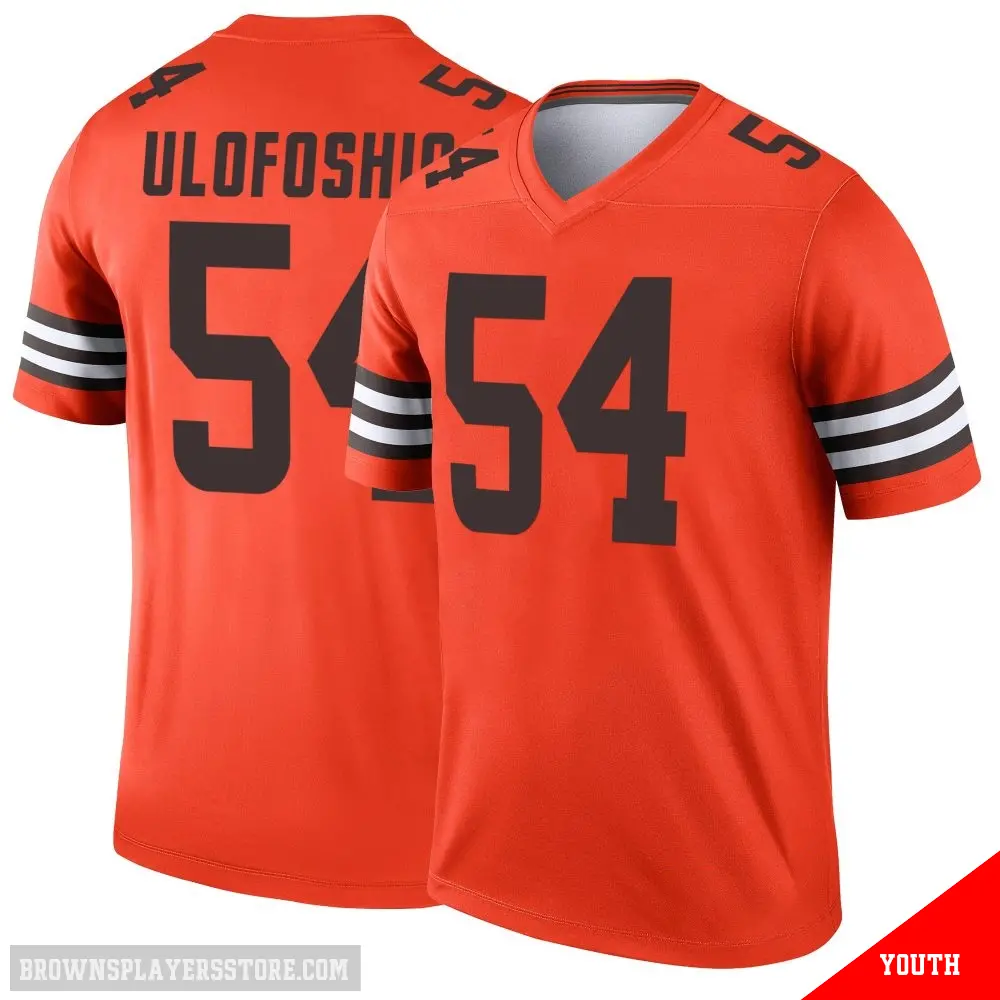 Display your Browns spirit year-round with this #54 Youth Edefuan Ulofoshio Orange Legend Cleveland Browns Inverted Jersey. Whether you're in the crowd or lounging at home, it's the ideal way to showcase your love for Browns.