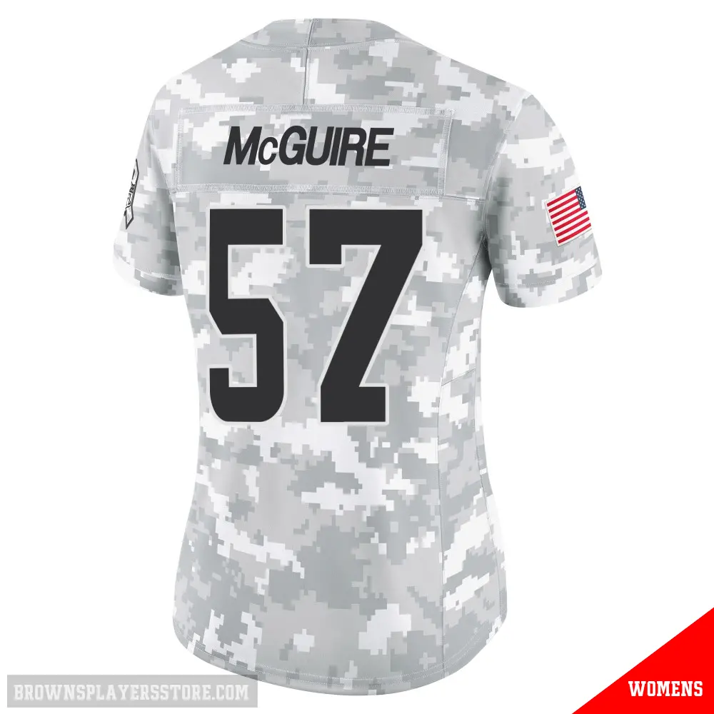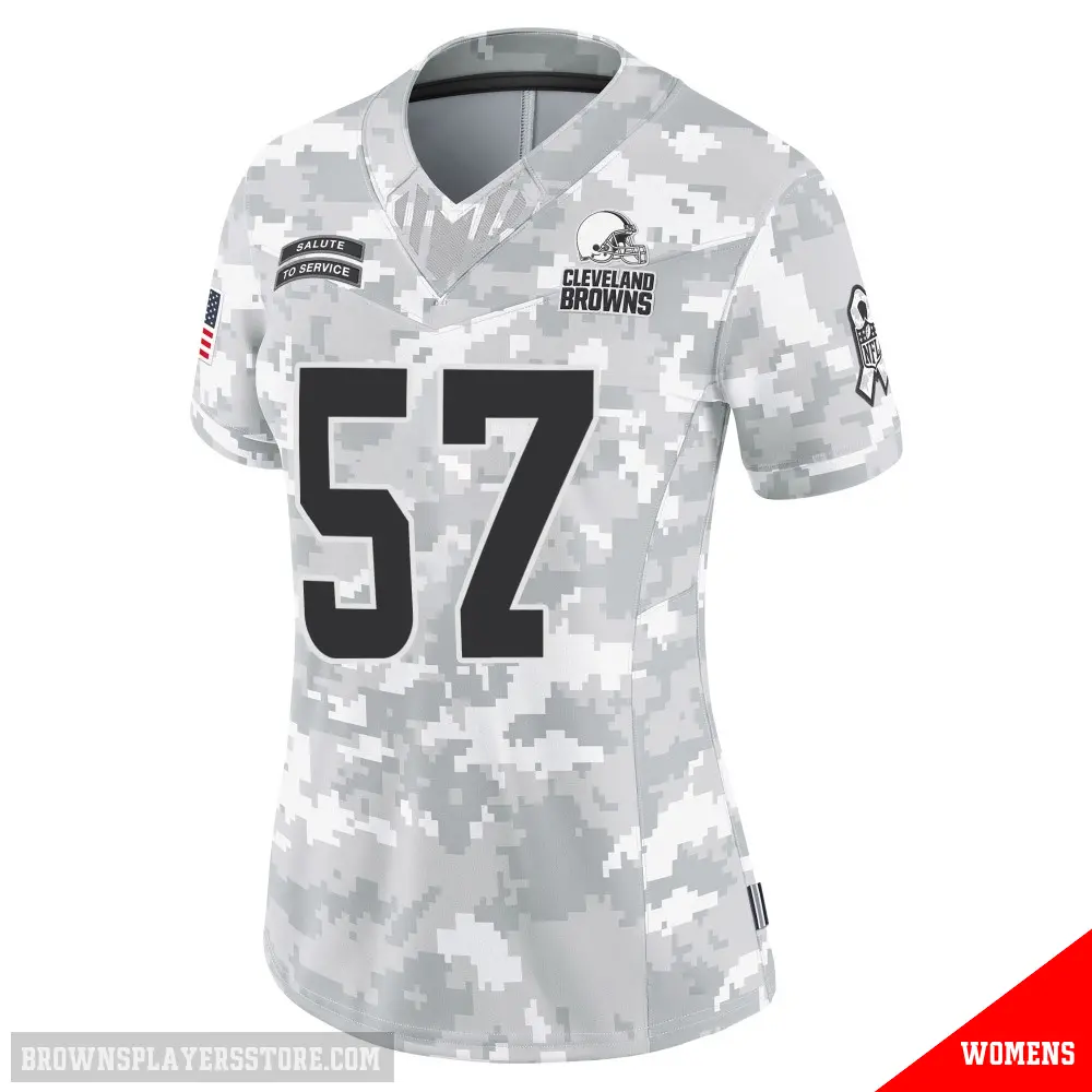 Display your Browns spirit year-round with this #57 Women's Isaiah McGuire Arctic Camo Limited Cleveland Browns 2024 Salute to Service Jersey. Whether you're in the crowd or lounging at home, it's the ideal way to showcase your love for Browns.
