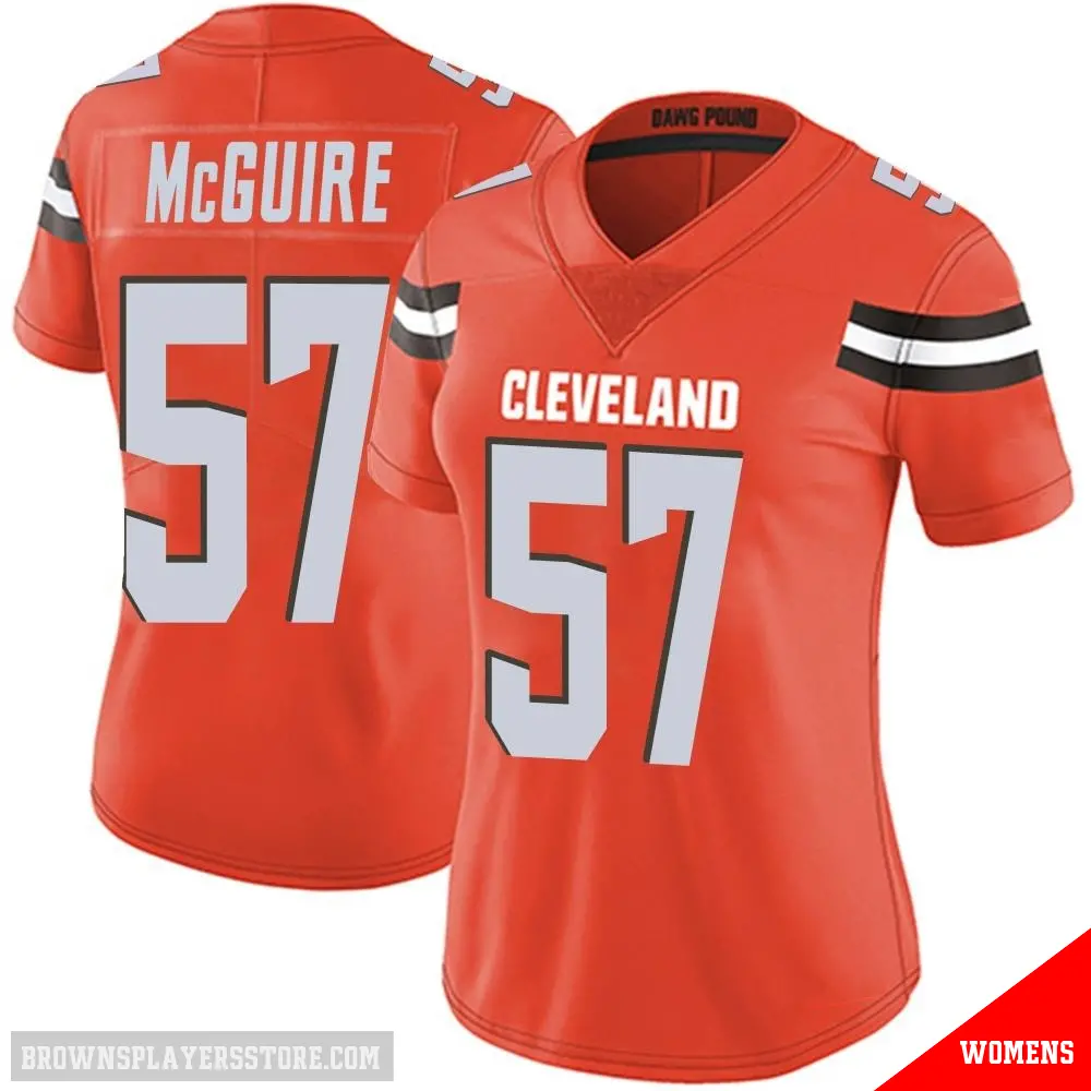 Display your Browns spirit year-round with this #57 Women's Isaiah McGuire Orange Limited Cleveland Browns Alternate Vapor Untouchable Jersey. Whether you're in the crowd or lounging at home, it's the ideal way to showcase your love for Browns.