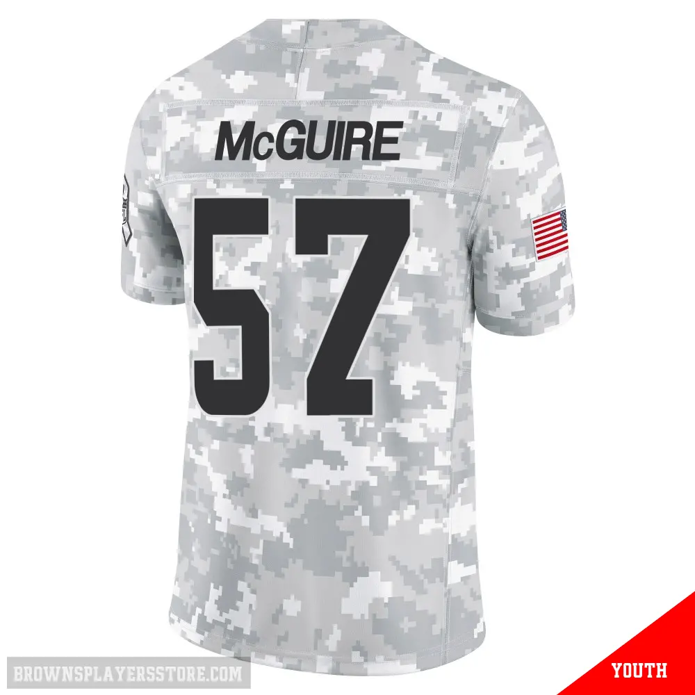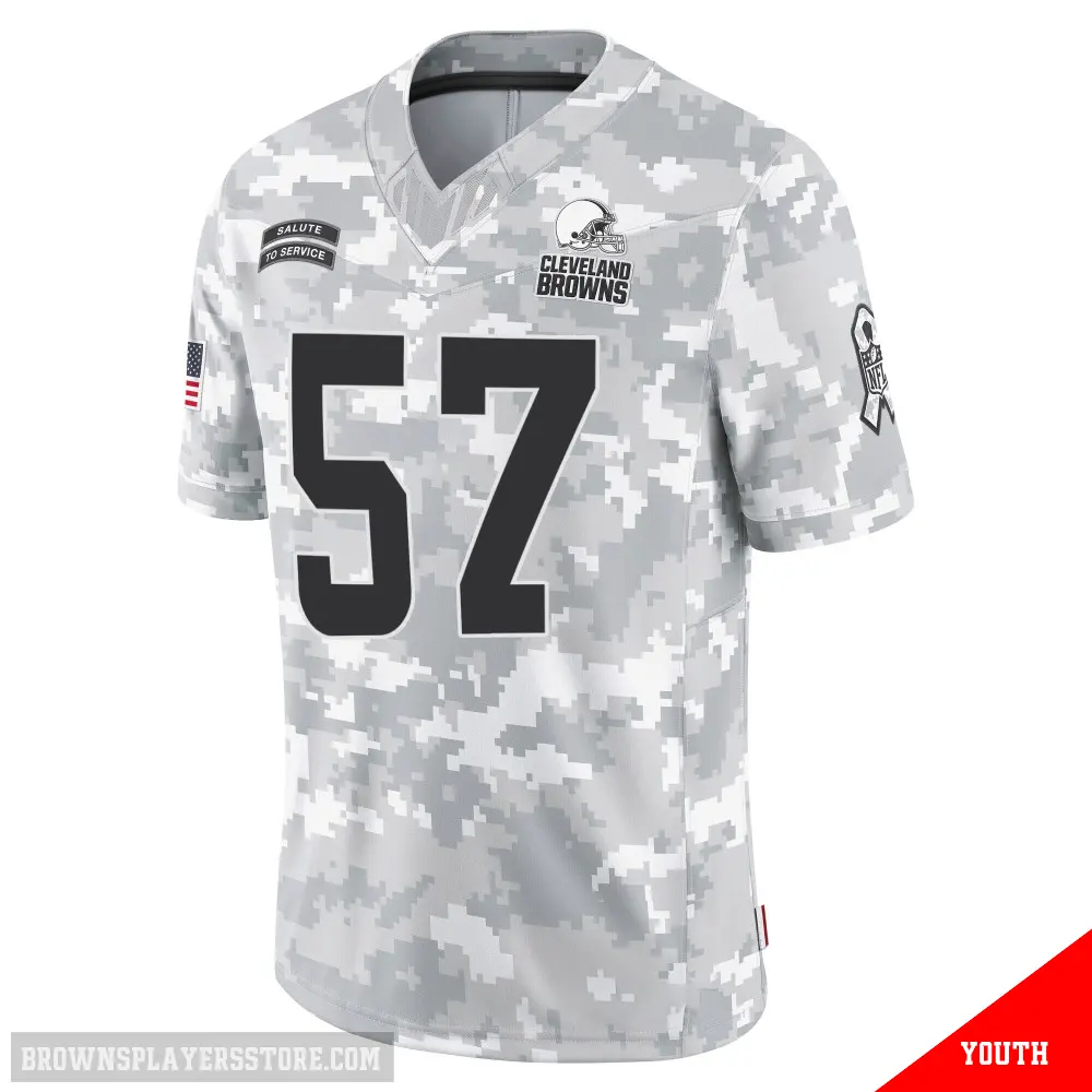 Display your Browns spirit year-round with this #57 Youth Isaiah McGuire Arctic Camo Limited Cleveland Browns 2024 Salute to Service Jersey. Whether you're in the crowd or lounging at home, it's the ideal way to showcase your love for Browns.