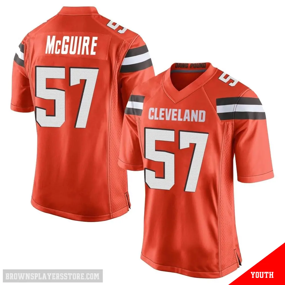Display your Browns spirit year-round with this #57 Youth Isaiah McGuire Orange Game Cleveland Browns Alternate Jersey. Whether you're in the crowd or lounging at home, it's the ideal way to showcase your love for Browns.