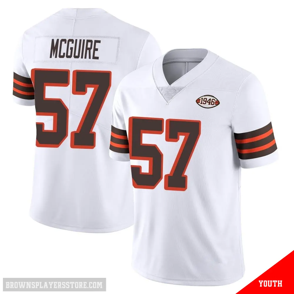 Display your Browns spirit year-round with this #57 Youth Isaiah McGuire White Limited Cleveland Browns Vapor 1946 Collection Alternate Jersey. Whether you're in the crowd or lounging at home, it's the ideal way to showcase your love for Browns.