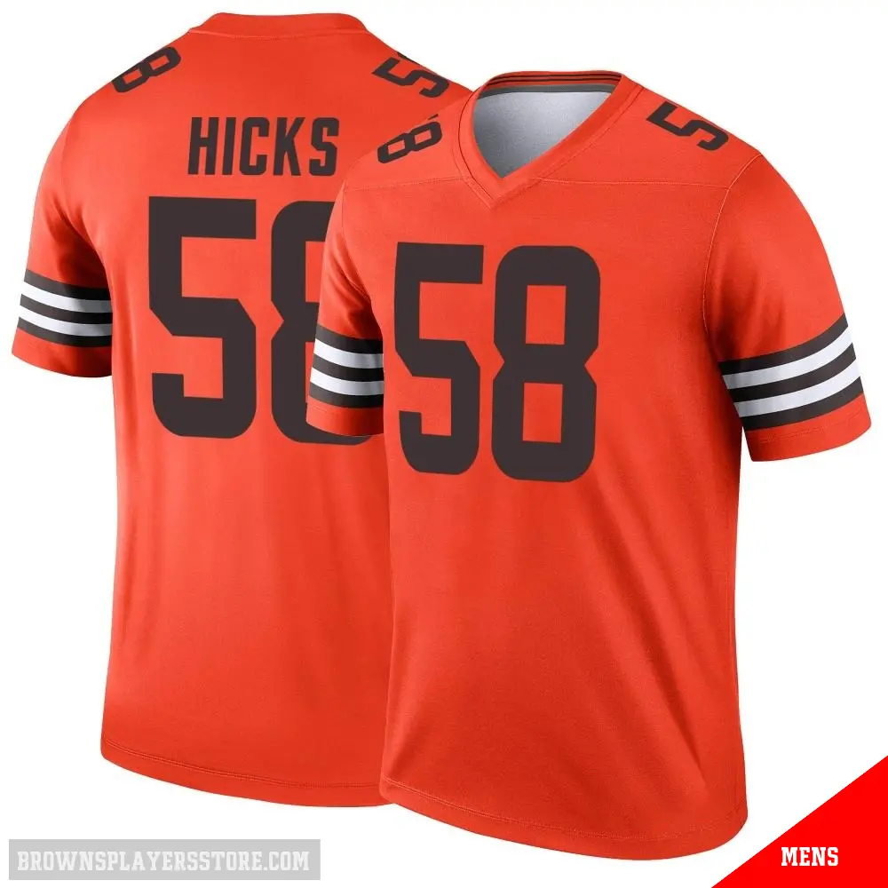 Display your Browns spirit year-round with this #58 Men's Jordan Hicks Orange Legend Cleveland Browns Inverted Jersey. Whether you're in the crowd or lounging at home, it's the ideal way to showcase your love for Browns.