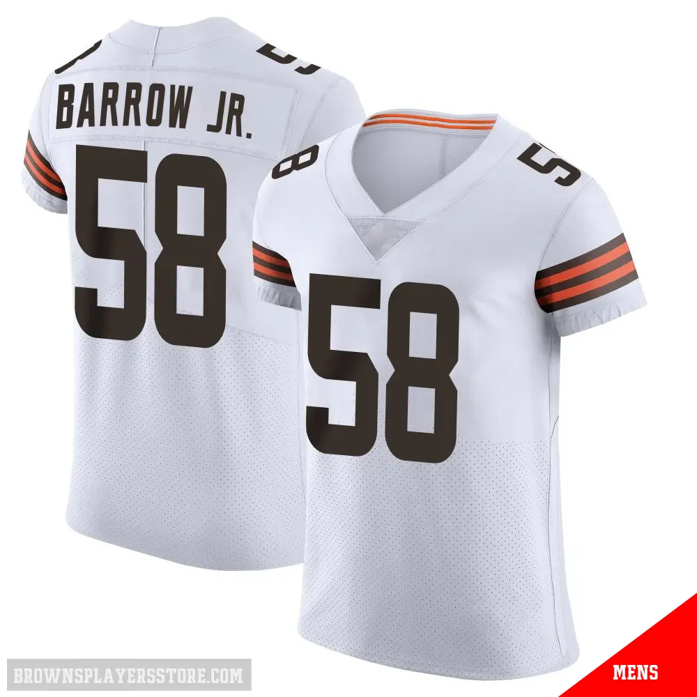 Display your Browns spirit year-round with this #58 Men's Simeon Barrow Jr. White Elite Cleveland Browns Vapor Jersey. Whether you're in the crowd or lounging at home, it's the ideal way to showcase your love for Browns.