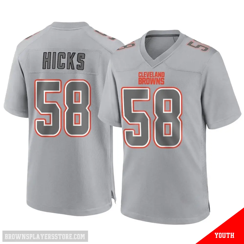 >Jordan Hicks Jersey>#58 Youth Jordan Hicks Gray Game Cleveland Browns Atmosphere Fashion Jersey
