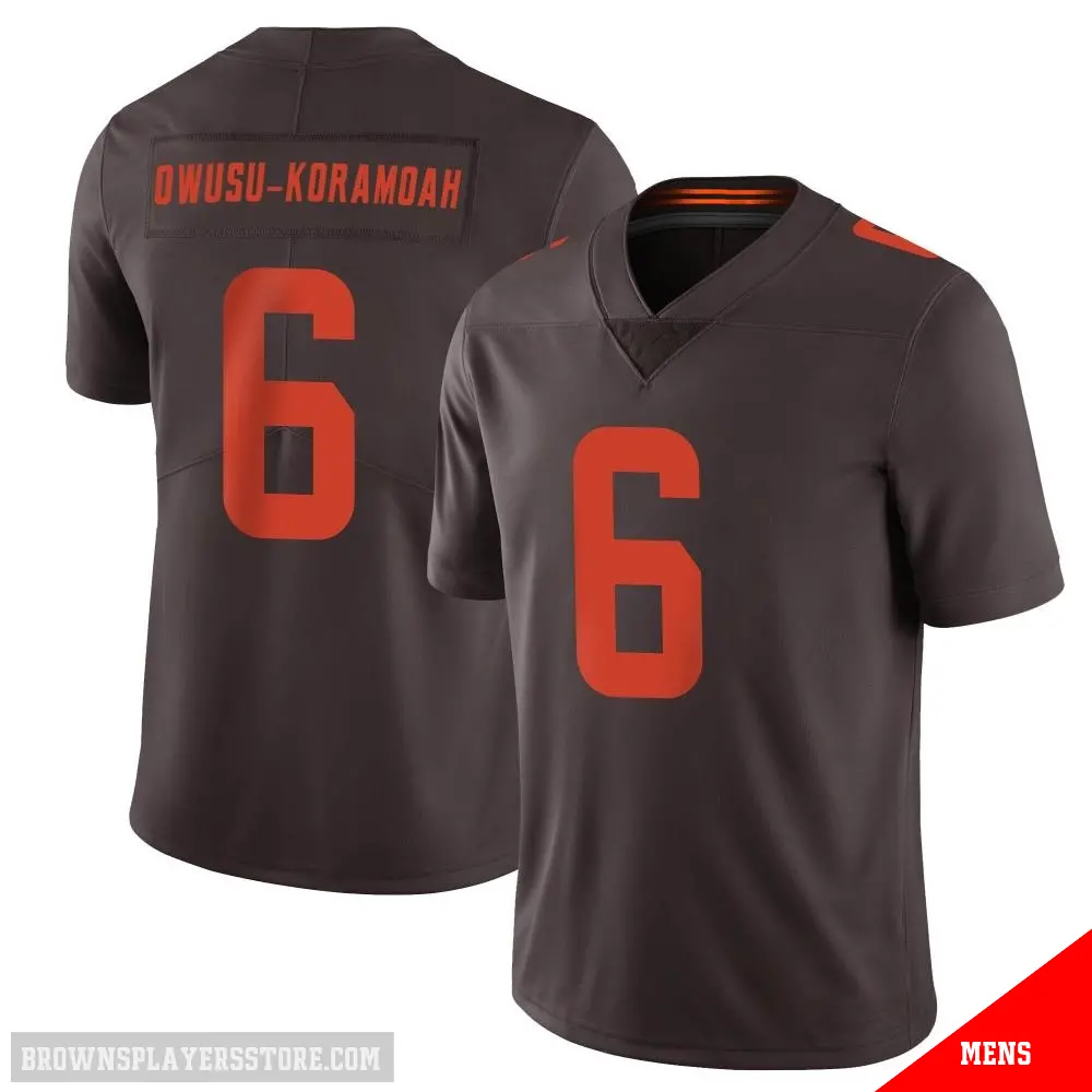 Display your Browns spirit year-round with this #6 Men's Jeremiah Owusu-Koramoah Brown Limited Cleveland Browns Vapor Alternate Jersey. Whether you're in the crowd or lounging at home, it's the ideal way to showcase your love for Browns.