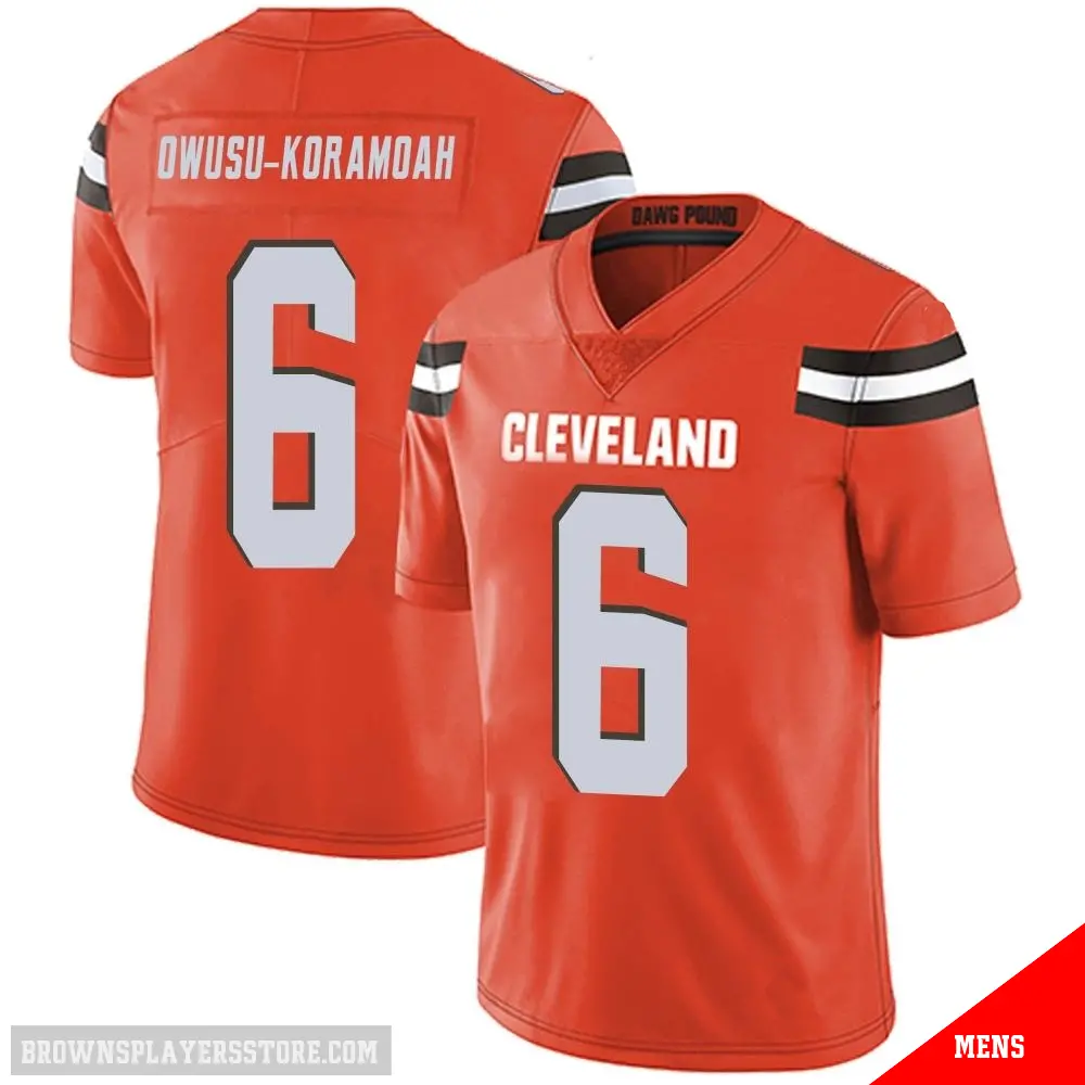 Display your Browns spirit year-round with this #6 Men's Jeremiah Owusu-Koramoah Orange Limited Cleveland Browns Alternate Vapor Untouchable Jersey. Whether you're in the crowd or lounging at home, it's the ideal way to showcase your love for Browns.