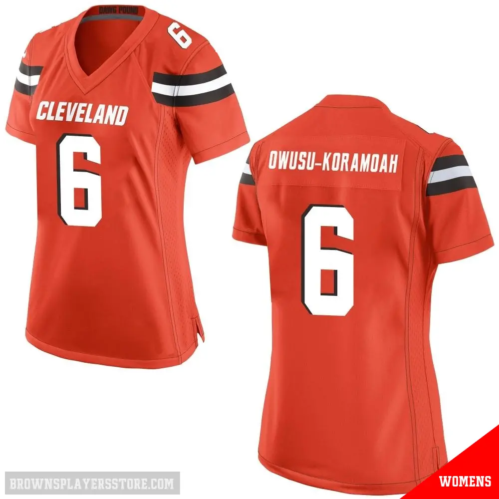 Display your Browns spirit year-round with this #6 Women's Jeremiah Owusu-Koramoah Orange Game Cleveland Browns Alternate Jersey. Whether you're in the crowd or lounging at home, it's the ideal way to showcase your love for Browns.