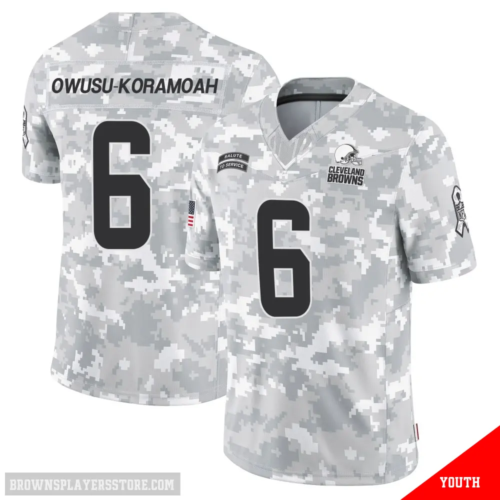 Display your Browns spirit year-round with this #6 Youth Jeremiah Owusu-Koramoah Arctic Camo Limited Cleveland Browns 2024 Salute to Service Jersey. Whether you're in the crowd or lounging at home, it's the ideal way to showcase your love for Browns.