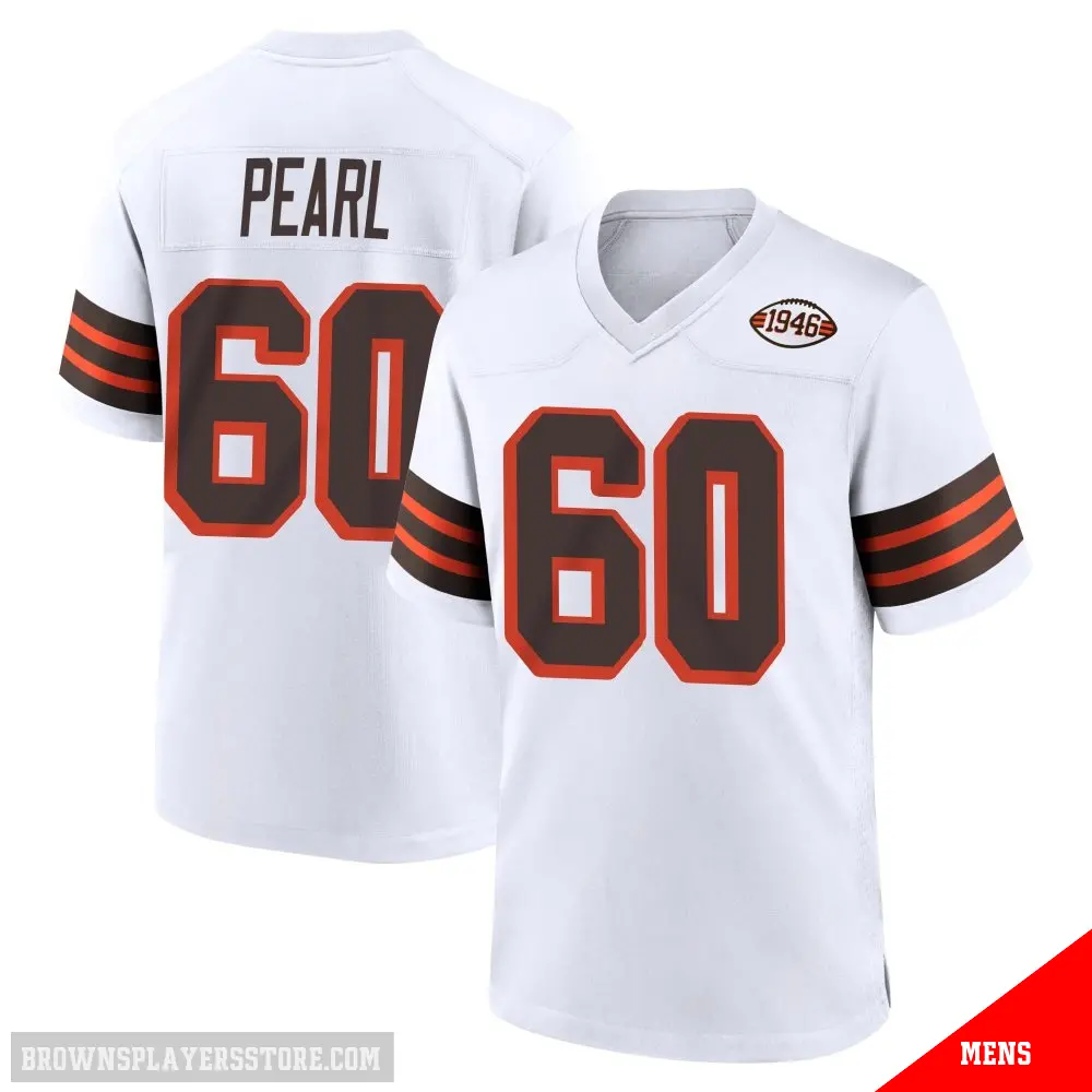 >Julian Pearl Jersey>#60 Men's Julian Pearl White Game Cleveland Browns 1946 Collection Alternate Jersey