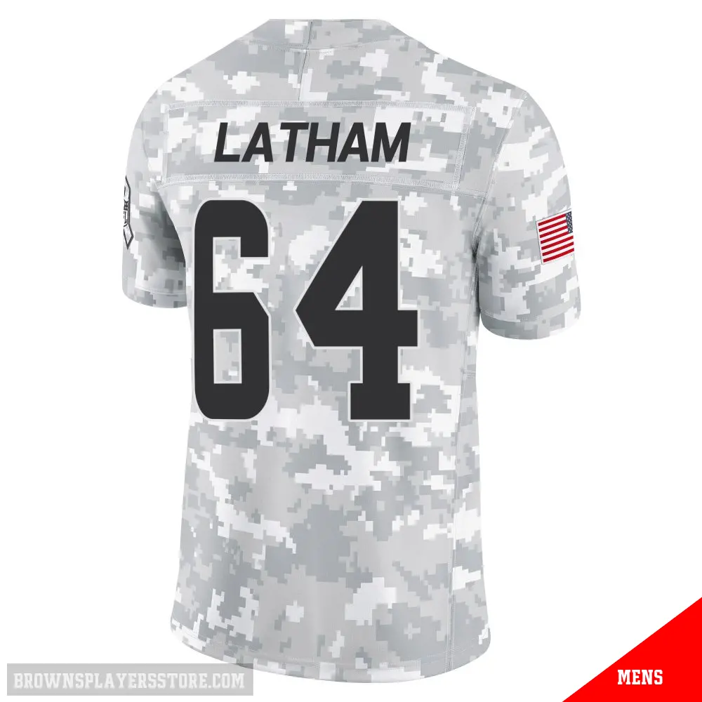 Display your Browns spirit year-round with this #64 Men's Brady Latham Arctic Camo Limited Cleveland Browns 2024 Salute to Service Jersey. Whether you're in the crowd or lounging at home, it's the ideal way to showcase your love for Browns.