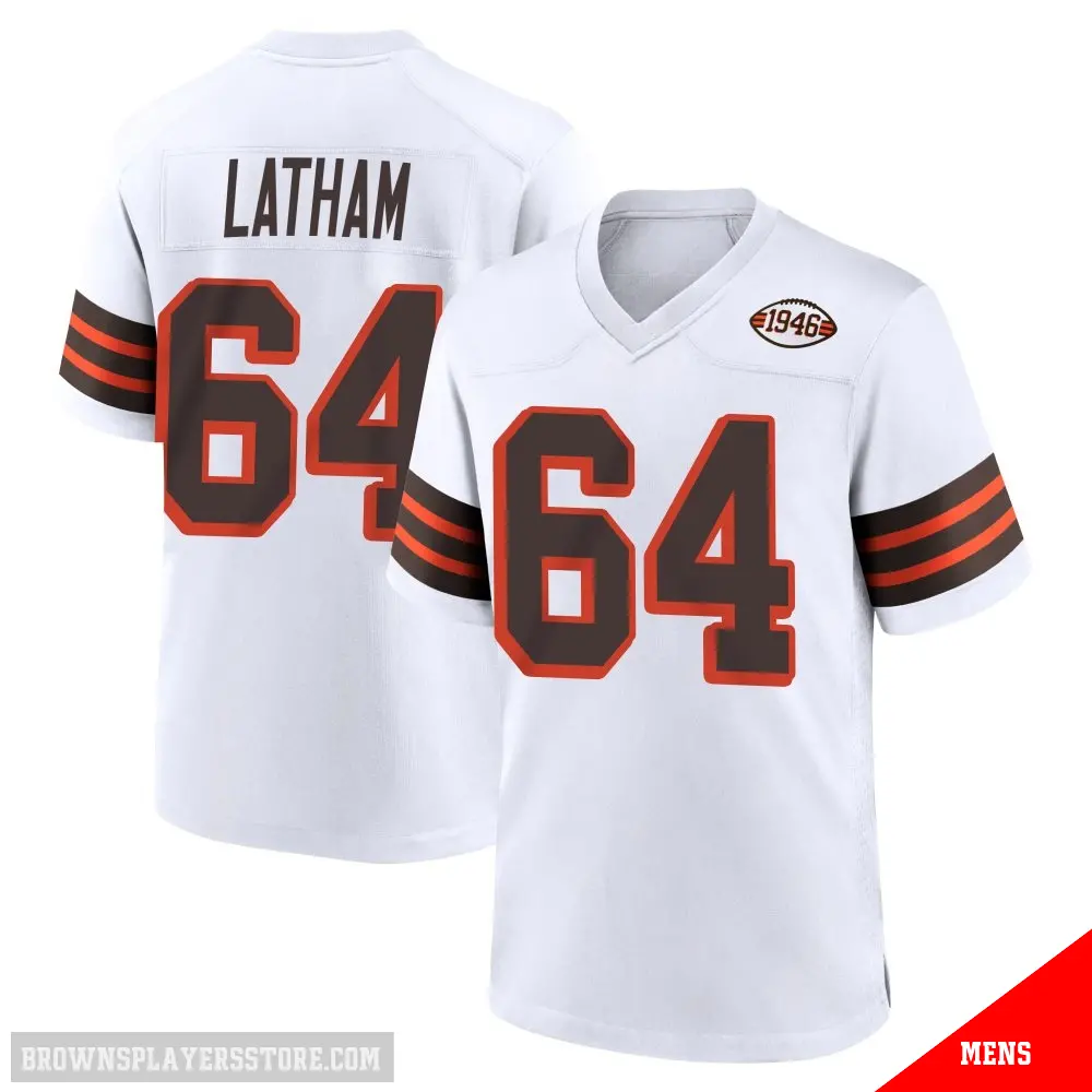 >Brady Latham Jersey>#64 Men's Brady Latham White Game Cleveland Browns 1946 Collection Alternate Jersey