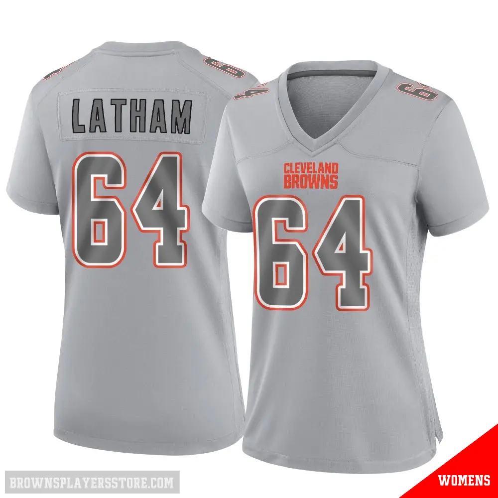 >Brady Latham Jersey>#64 Women's Brady Latham Gray Game Cleveland Browns Atmosphere Fashion Jersey