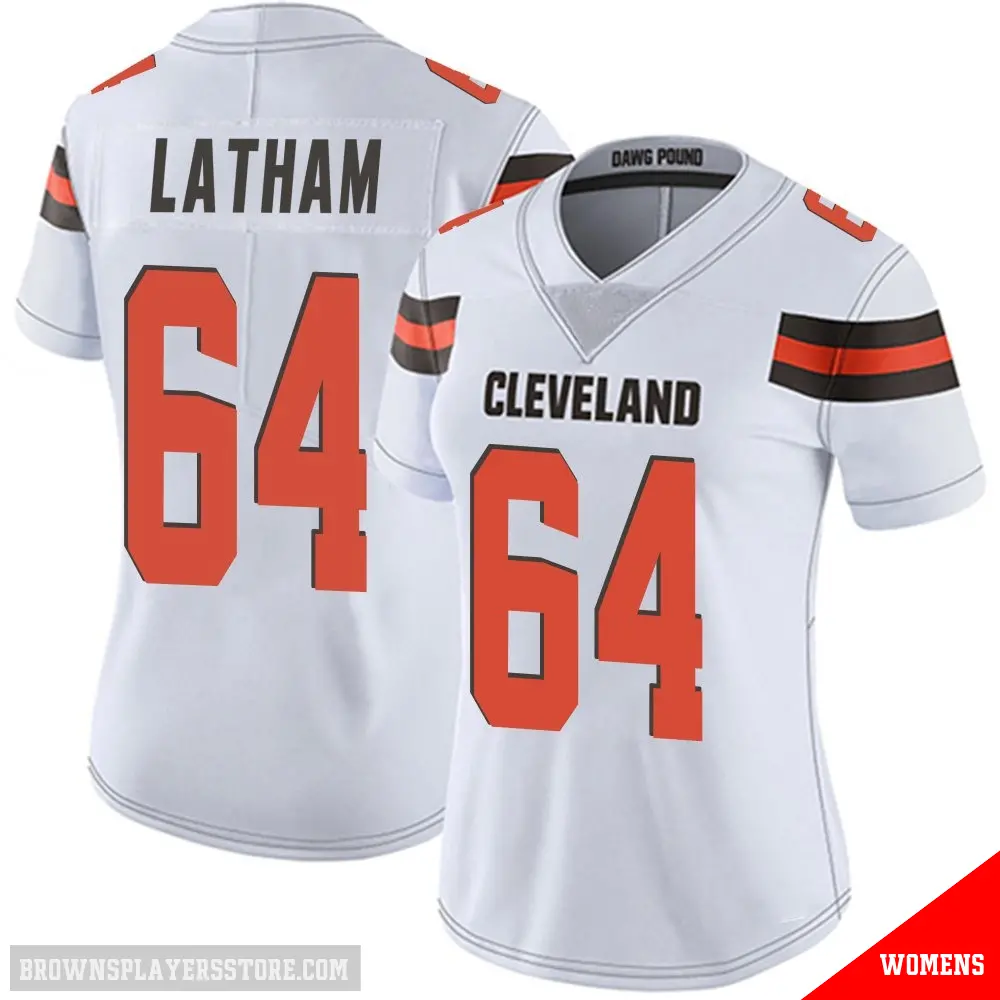 >Brady Latham Jersey>#64 Women's Brady Latham White Limited Cleveland Browns Vapor Untouchable Jersey
