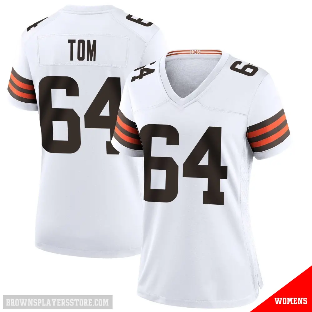 #64 Women's Cameron Tom White Game Cleveland Browns Jersey