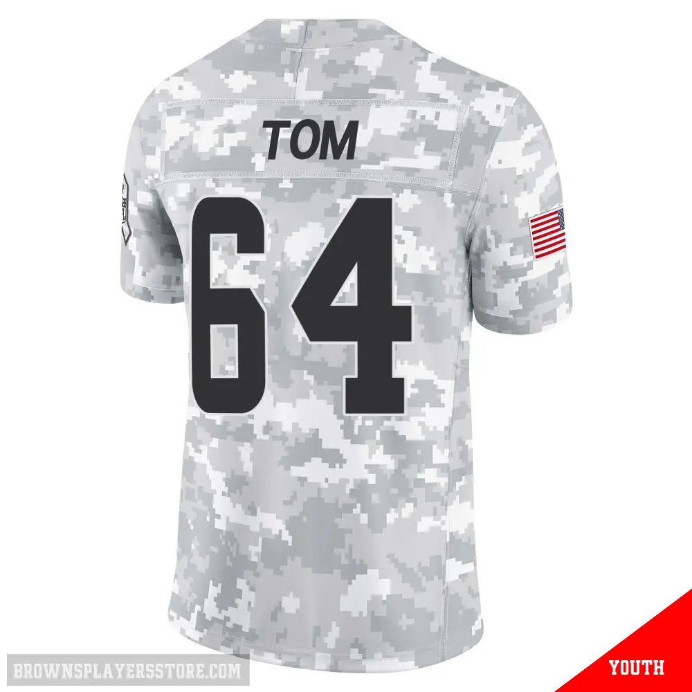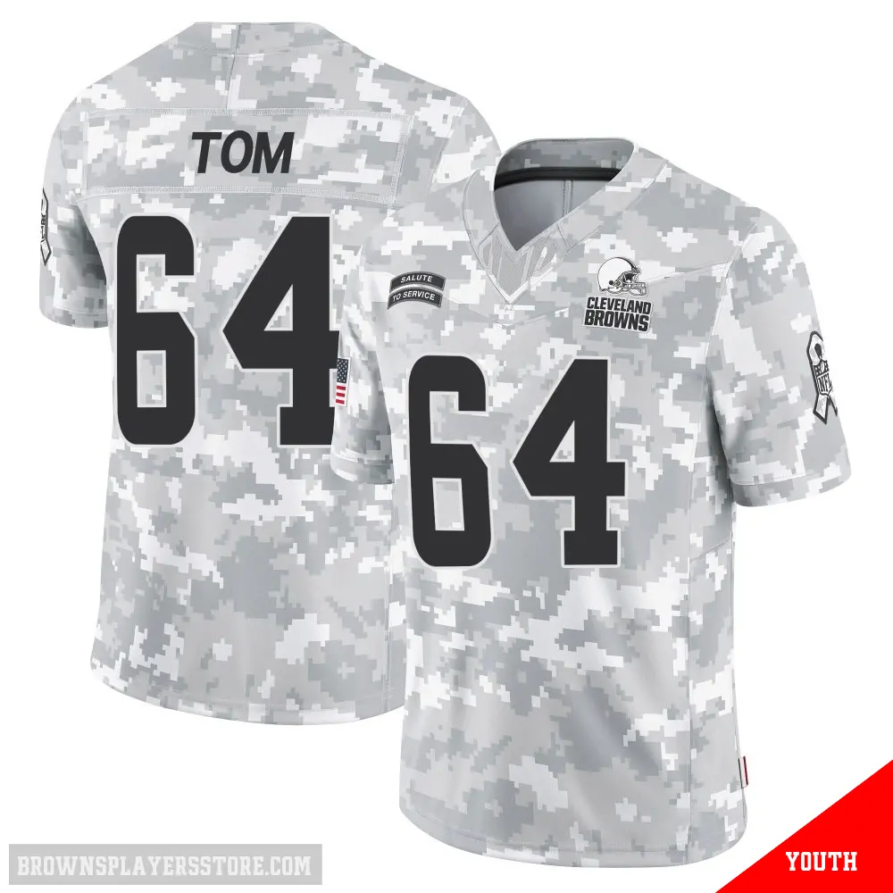 Display your Browns spirit year-round with this #64 Youth Cameron Tom Arctic Camo Limited Cleveland Browns 2024 Salute to Service Jersey. Whether you're in the crowd or lounging at home, it's the ideal way to showcase your love for Browns.