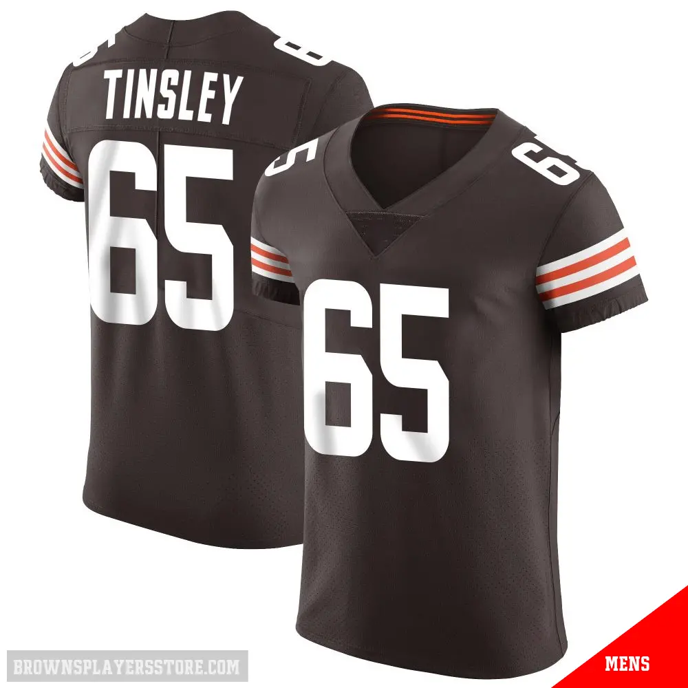Display your Browns spirit year-round with this #65 Men's Dartanyan Tinsley Brown Elite Cleveland Browns Vapor Jersey. Whether you're in the crowd or lounging at home, it's the ideal way to showcase your love for Browns.
