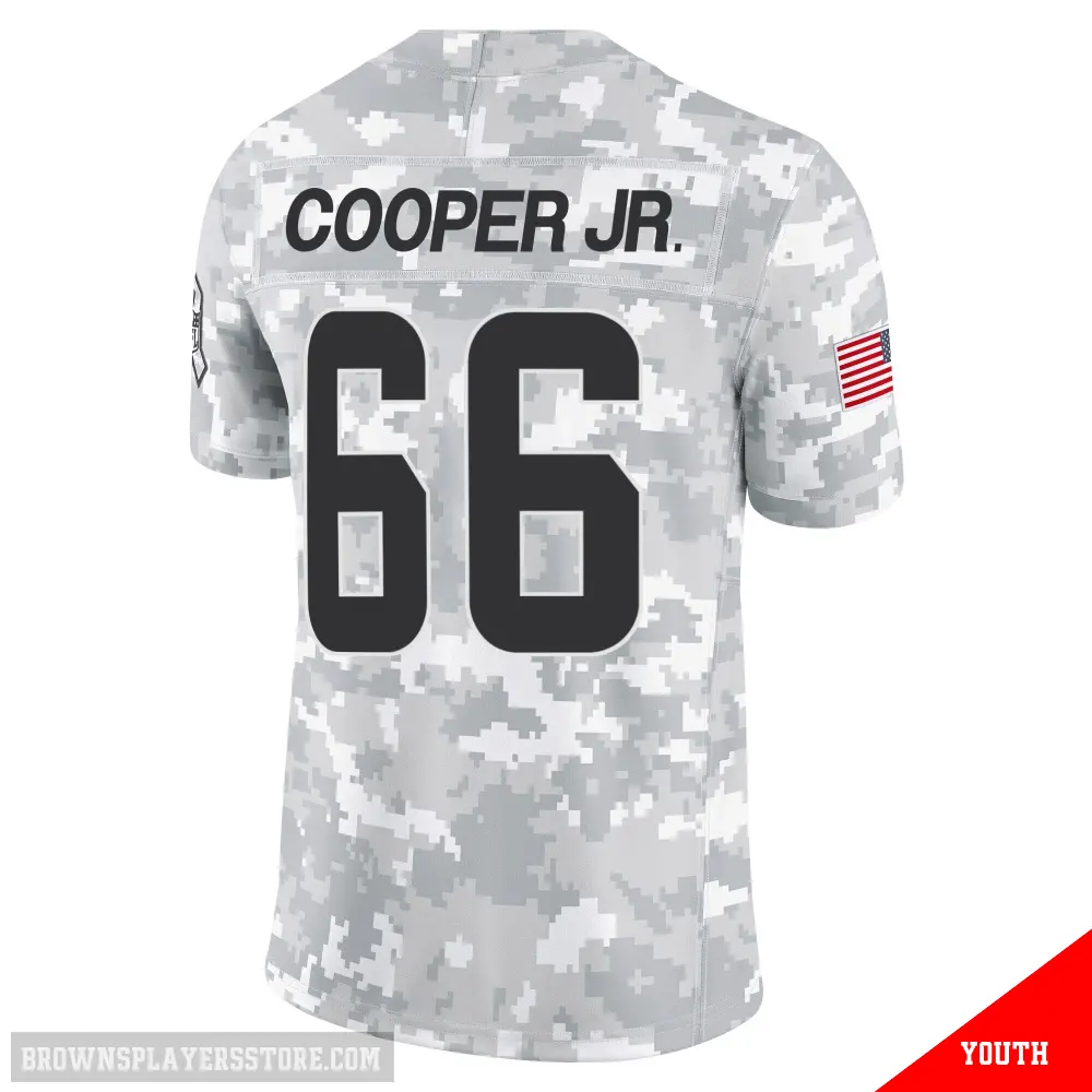 Display your Browns spirit year-round with this #66 Youth Keith Cooper Jr. Arctic Camo Limited Cleveland Browns 2024 Salute to Service Jersey. Whether you're in the crowd or lounging at home, it's the ideal way to showcase your love for Browns.
