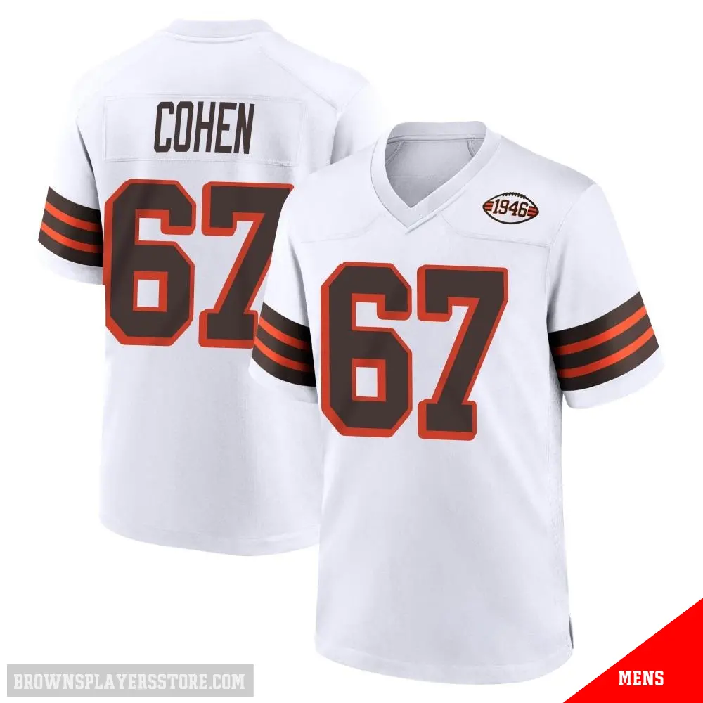 >Javion Cohen Jersey>#67 Men's Javion Cohen White Game Cleveland Browns 1946 Collection Alternate Jersey