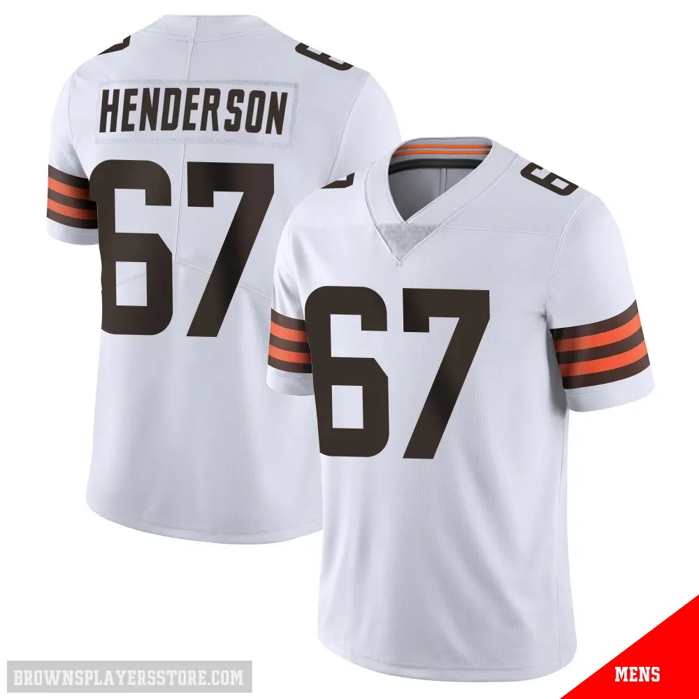 Display your Browns spirit year-round with this #67 Men's LaDarius Henderson White Limited Cleveland Browns Vapor Untouchable Jersey. Whether you're in the crowd or lounging at home, it's the ideal way to showcase your love for Browns.