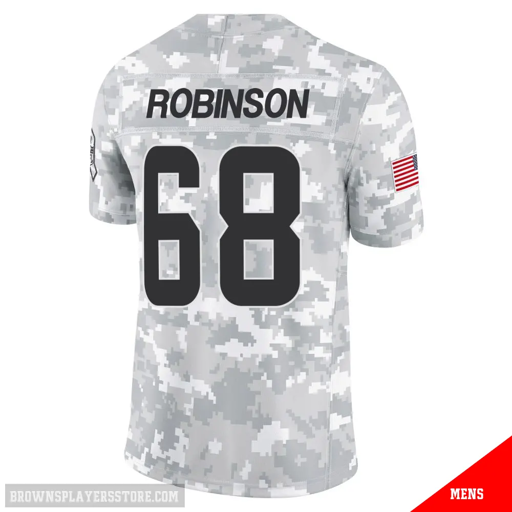 Display your Browns spirit year-round with this #68 Men's Cam Robinson Arctic Camo Limited Cleveland Browns 2024 Salute to Service Jersey. Whether you're in the crowd or lounging at home, it's the ideal way to showcase your love for Browns.
