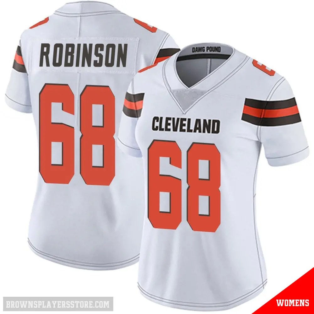 Display your Browns spirit year-round with this #68 Women's Cam Robinson White Limited Cleveland Browns Vapor Untouchable Jersey. Whether you're in the crowd or lounging at home, it's the ideal way to showcase your love for Browns.
