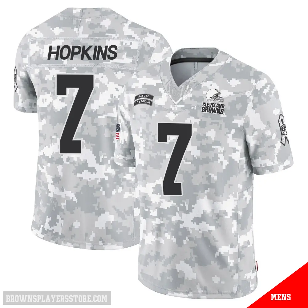 Display your Browns spirit year-round with this #7 Men's Dustin Hopkins Arctic Camo Limited Cleveland Browns 2024 Salute to Service Jersey. Whether you're in the crowd or lounging at home, it's the ideal way to showcase your love for Browns.