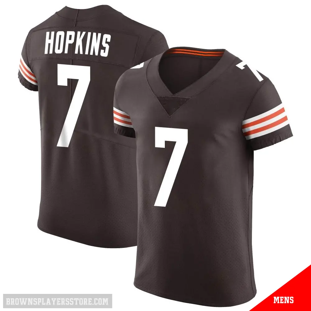 Display your Browns spirit year-round with this #7 Men's Dustin Hopkins Brown Elite Cleveland Browns Vapor Jersey. Whether you're in the crowd or lounging at home, it's the ideal way to showcase your love for Browns.