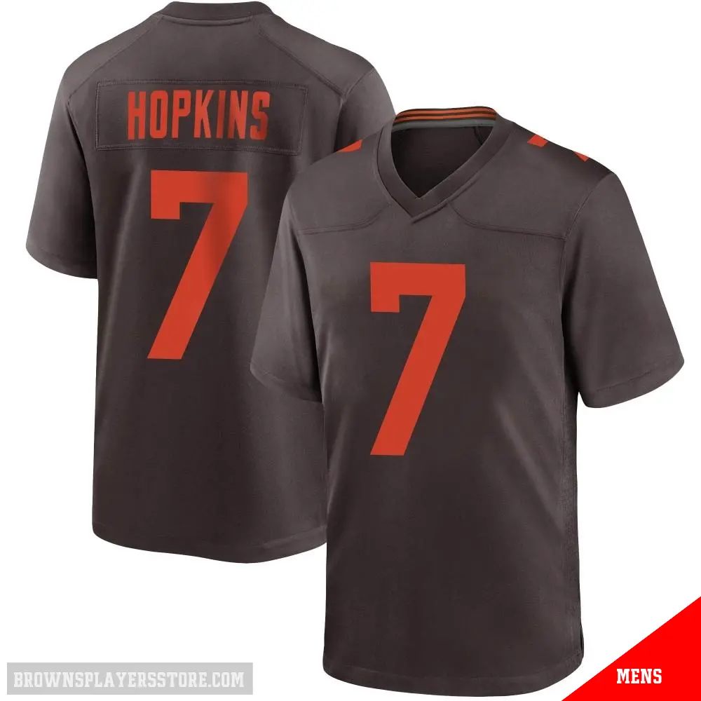 Display your Browns spirit year-round with this #7 Men's Dustin Hopkins Brown Game Cleveland Browns Alternate Jersey. Whether you're in the crowd or lounging at home, it's the ideal way to showcase your love for Browns.