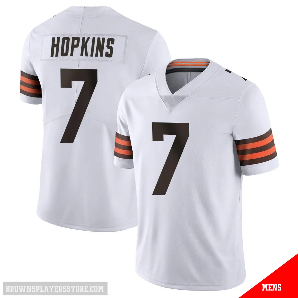 Display your Browns spirit year-round with this #7 Men's Dustin Hopkins White Limited Cleveland Browns Vapor Untouchable Jersey. Whether you're in the crowd or lounging at home, it's the ideal way to showcase your love for Browns.