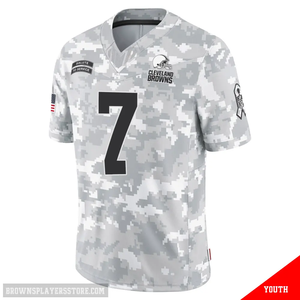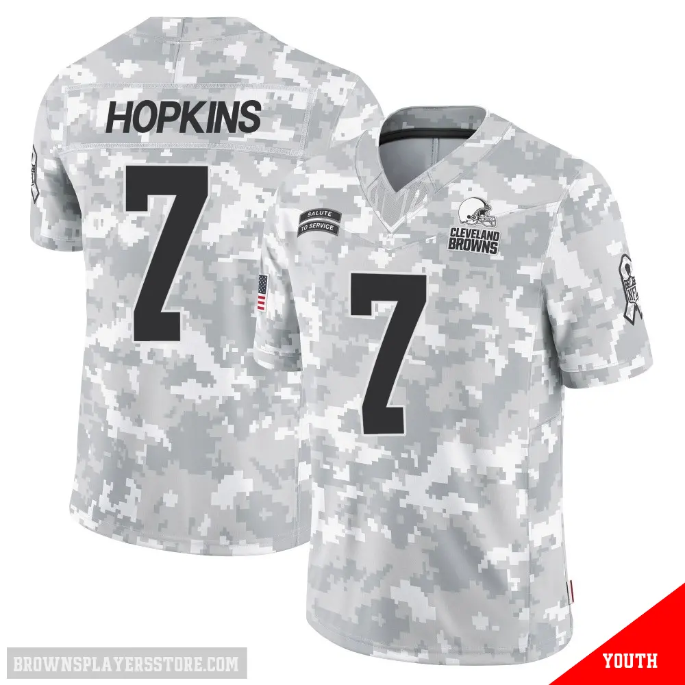 Display your Browns spirit year-round with this #7 Youth Dustin Hopkins Arctic Camo Limited Cleveland Browns 2024 Salute to Service Jersey. Whether you're in the crowd or lounging at home, it's the ideal way to showcase your love for Browns.