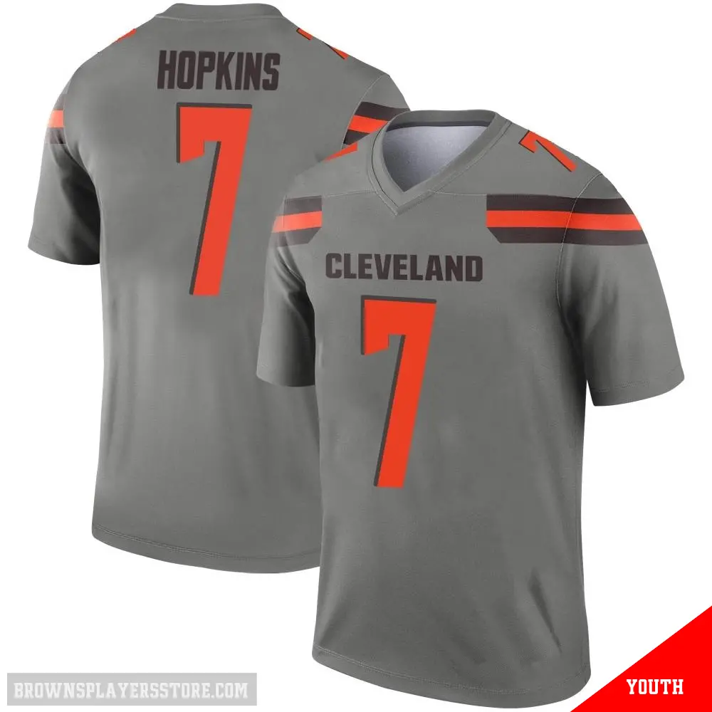 Display your Browns spirit year-round with this #7 Youth Dustin Hopkins Legend Cleveland Browns Inverted Silver Jersey. Whether you're in the crowd or lounging at home, it's the ideal way to showcase your love for Browns.