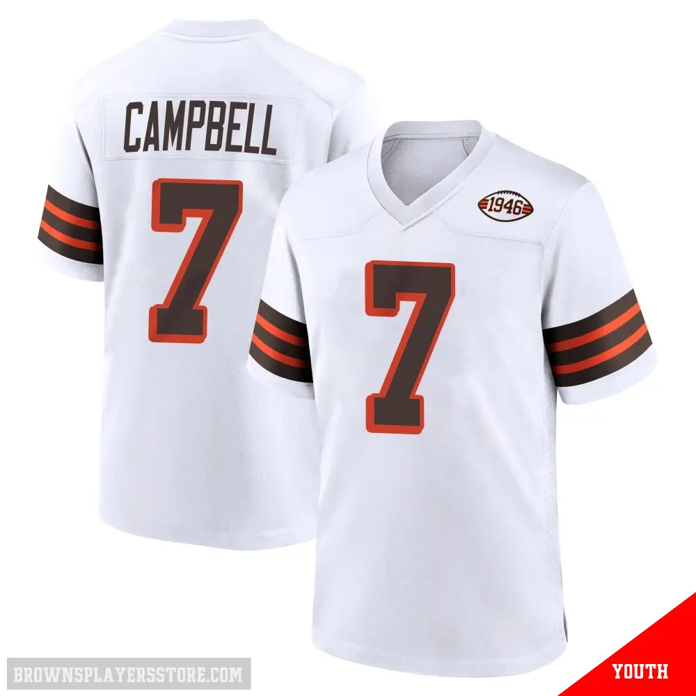 Display your Browns spirit year-round with this #7 Youth Tyson Campbell White Game Cleveland Browns 1946 Collection Alternate Jersey. Whether you're in the crowd or lounging at home, it's the ideal way to showcase your love for Browns.