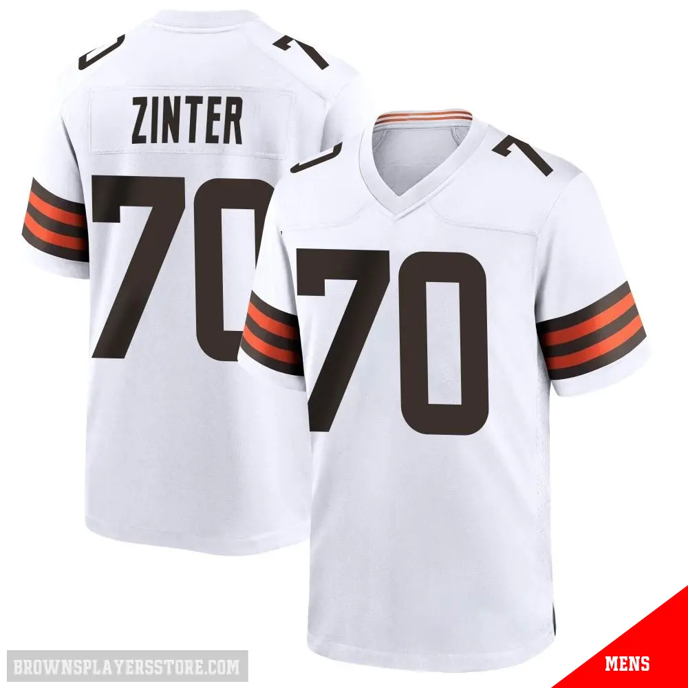 #70 Men's Zak Zinter White Game Cleveland Browns Jersey