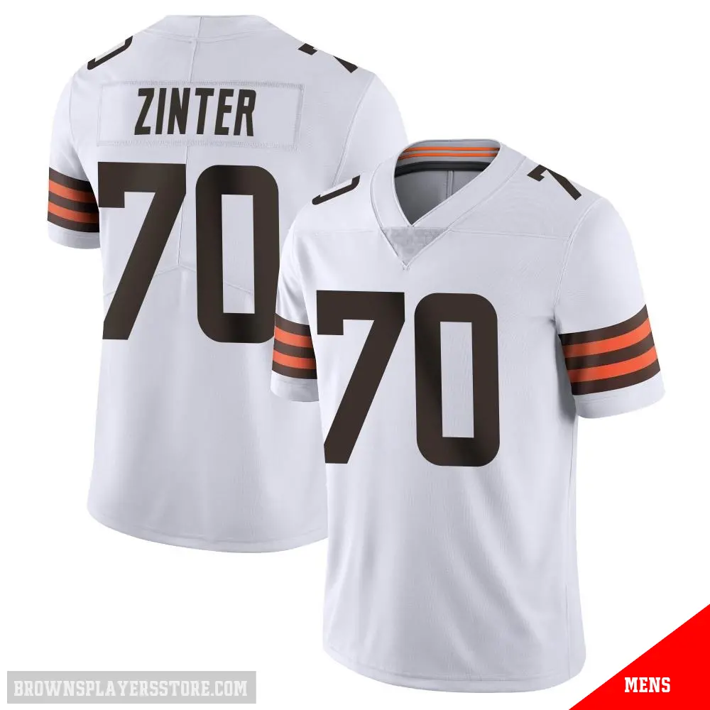 #70 Men's Zak Zinter White Limited Cleveland Browns Vapor Untouchable Jersey