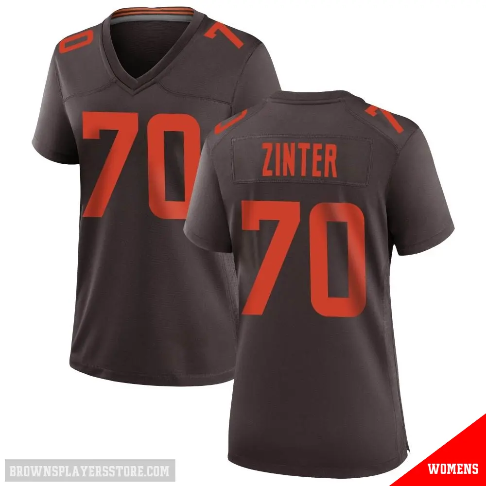 #70 Women's Zak Zinter Brown Game Cleveland Browns Alternate Jersey