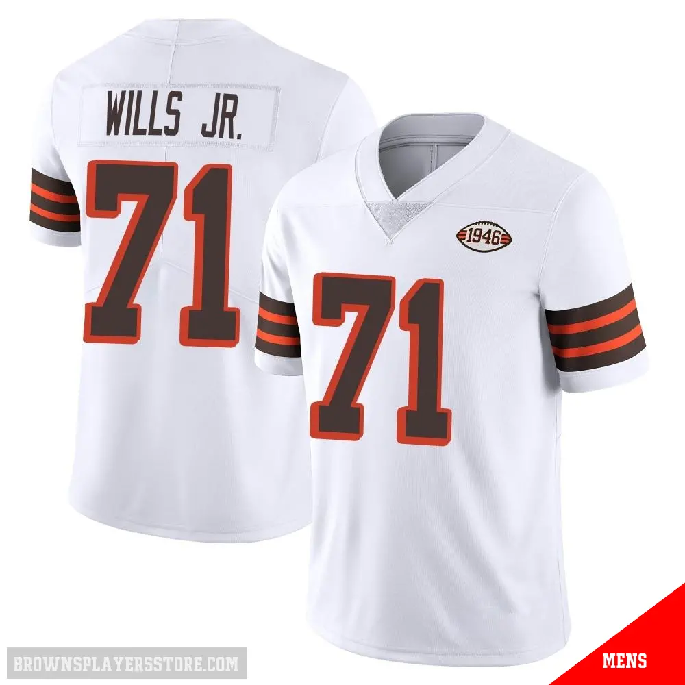 Display your Browns spirit year-round with this #71 Men's Jedrick Wills Jr. White Limited Cleveland Browns Vapor 1946 Collection Alternate Jersey. Whether you're in the crowd or lounging at home, it's the ideal way to showcase your love for Browns.