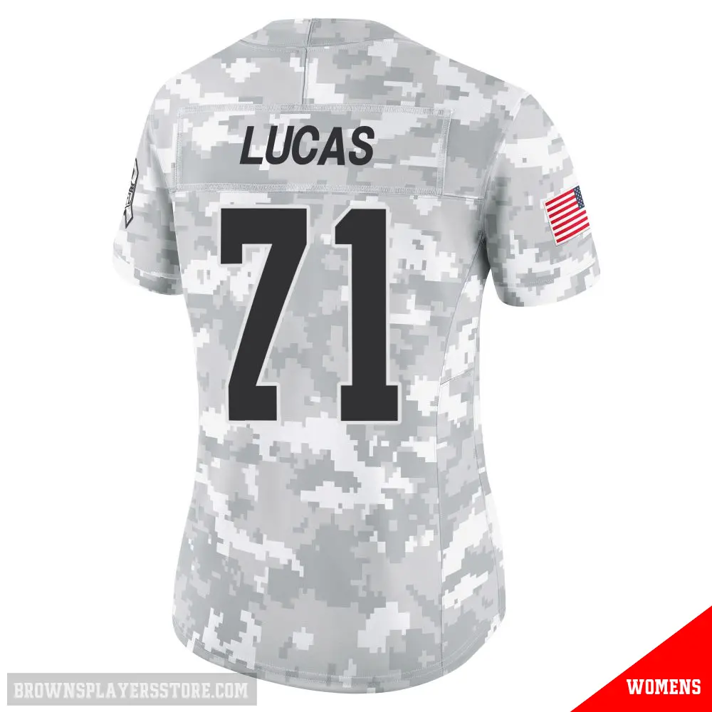 Display your Browns spirit year-round with this #71 Women's Cornelius Lucas Arctic Camo Limited Cleveland Browns 2024 Salute to Service Jersey. Whether you're in the crowd or lounging at home, it's the ideal way to showcase your love for Browns.