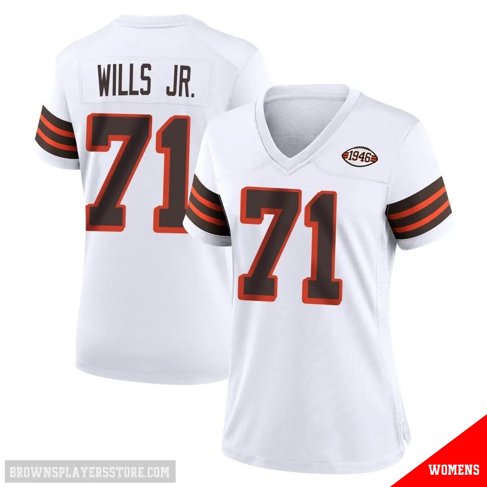 Display your Browns spirit year-round with this #71 Women's Jedrick Wills Jr. White Game Cleveland Browns 1946 Collection Alternate Jersey. Whether you're in the crowd or lounging at home, it's the ideal way to showcase your love for Browns.