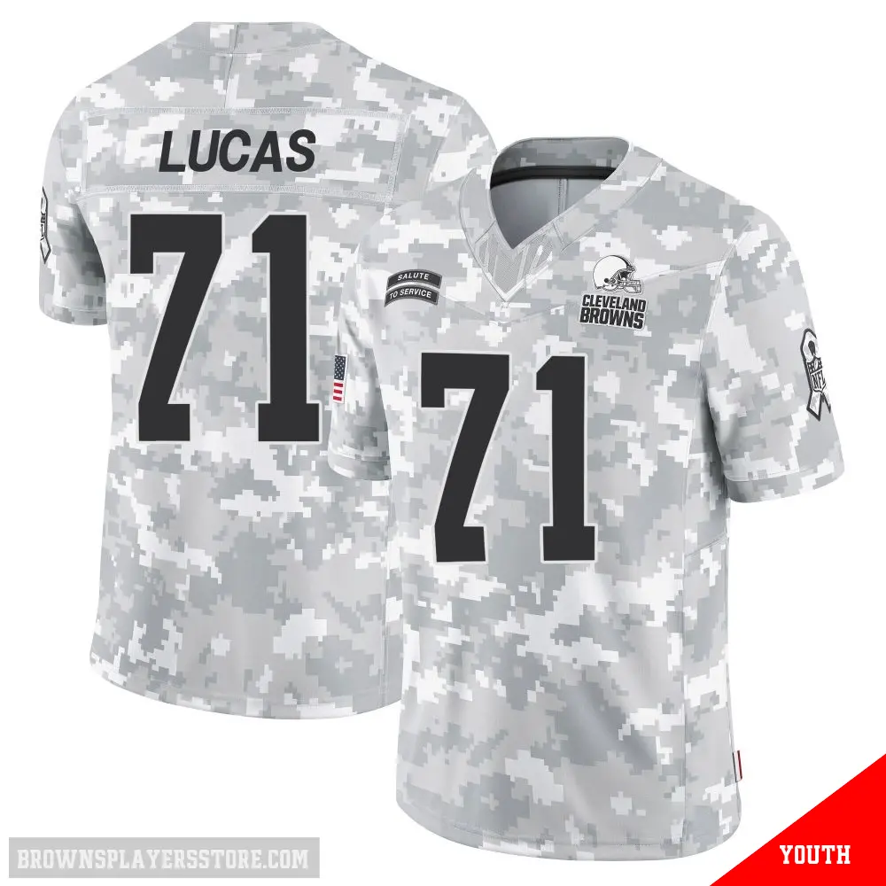 Display your Browns spirit year-round with this #71 Youth Cornelius Lucas Arctic Camo Limited Cleveland Browns 2024 Salute to Service Jersey. Whether you're in the crowd or lounging at home, it's the ideal way to showcase your love for Browns.