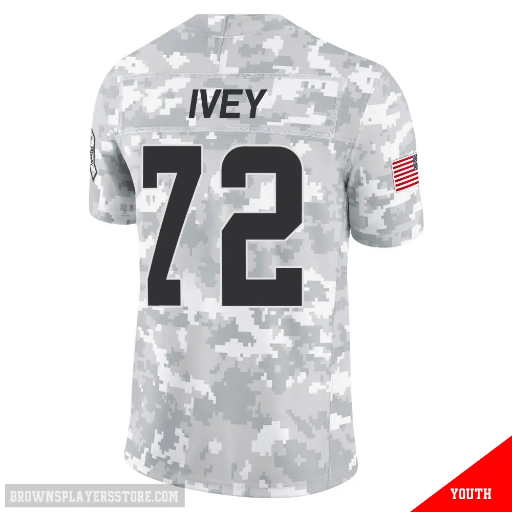 Display your Browns spirit year-round with this #72 Youth Jason Ivey Arctic Camo Limited Cleveland Browns 2024 Salute to Service Jersey. Whether you're in the crowd or lounging at home, it's the ideal way to showcase your love for Browns.
