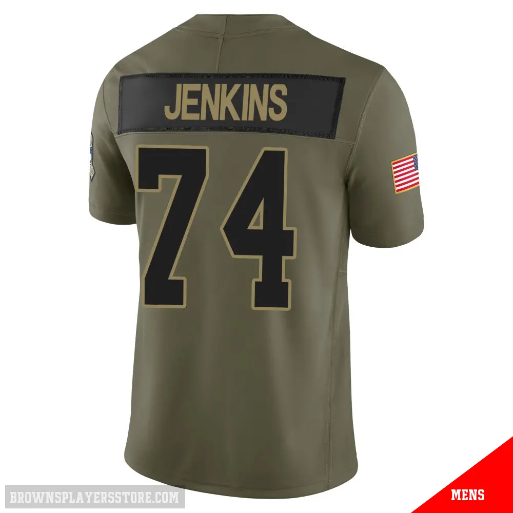 #74 Men's Teven Jenkins Olive Limited Cleveland Browns 2025 Salute to Service Jersey